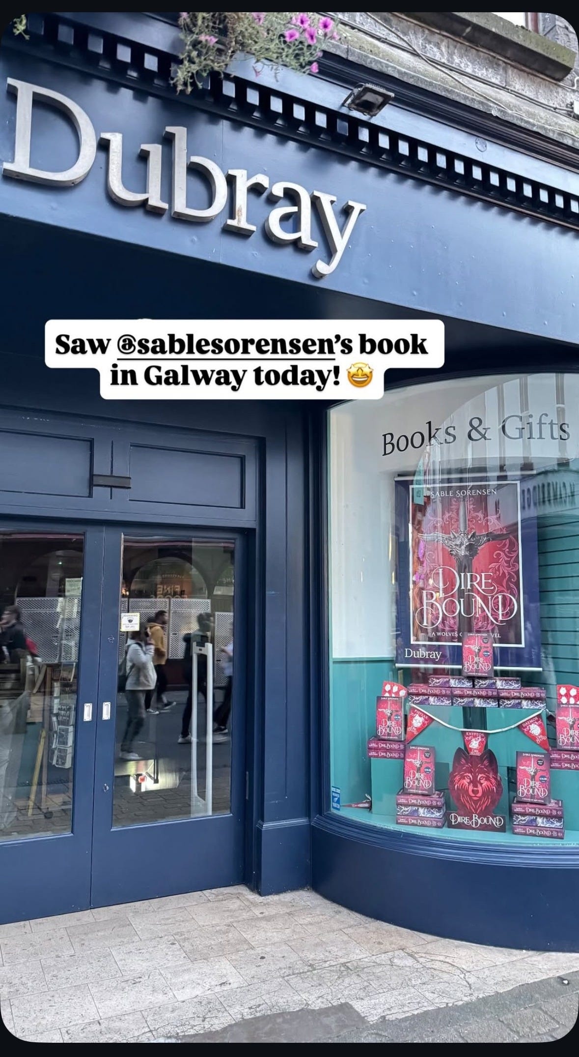 And check out one more super cool picture from a reader, of Dire Bound in the window at a store in Galway, Ireland: